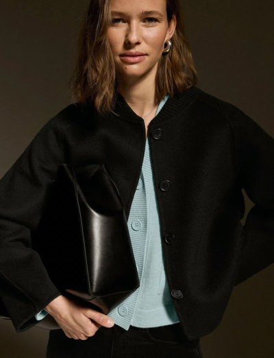 Denne korte jakke er fremstillet af doubleface-stof og har en strikket ribkrave i uld. Designet giver en raffineret silhuet og en behagelig pasform.