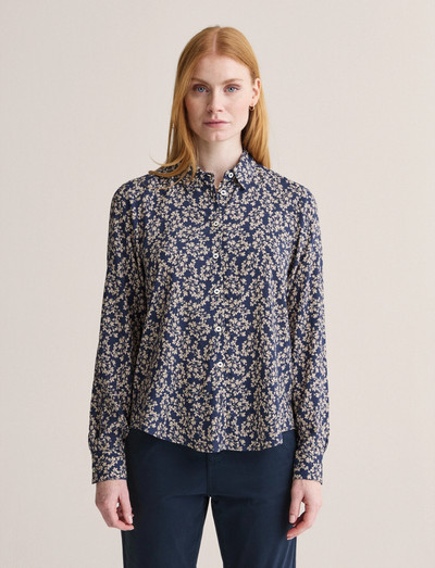 Denne langærmede skjorte er vævet med et delikat blomsterprint og giver et raffineret udtryk. Den lukkes med perlemorsknapper, hvilket giver et tidløst og sofistikeret look.