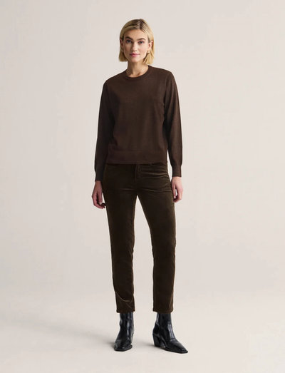 Disse bukser er fremstillet i blød fløjl og har en behagelig, slank pasform. Designet med fem lommer giver et klassisk touch, mens blandingen af bomuld og modal sikrer et blødt fald.