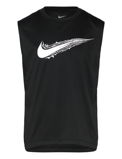 Denne Nike Kids ærmeløs t-shirt er et godt valg til aktive børn. Den har et stilfuldt design med en stor Nike swoosh-logo på forsiden. Dri-FIT-teknologien hjælper med at holde dem kølige og tørre under leg.