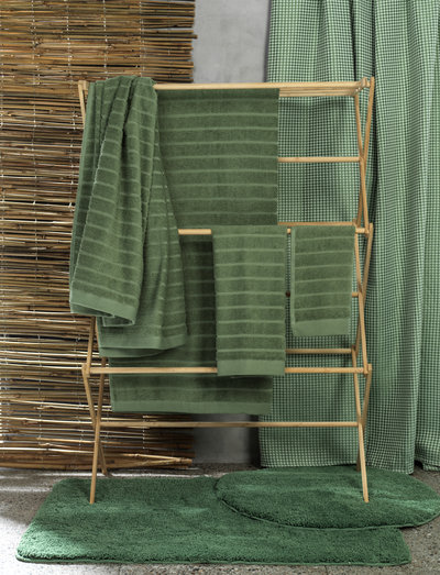 Et vidunderligt rundt badeværelsestæppe med et højt og blødt tæppe med en dejlig glans i mørkegrøn. Med sin Ø60 cm-dimension passer det til de fleste badeværelser, og du kan nemt vaske det ved 30 °C skånevask. Badeværelsestæppet har en latexbagside for at beskytte mod skridskader, og det er også øko-tex-certificeret.