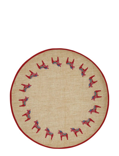 Beautiful Christmas tree mat with a decorative printed pattern of elves that form a ring around the center where the tree will stand. The Christmas tree mat has a plastic back that protects your floor against minor water leaks.