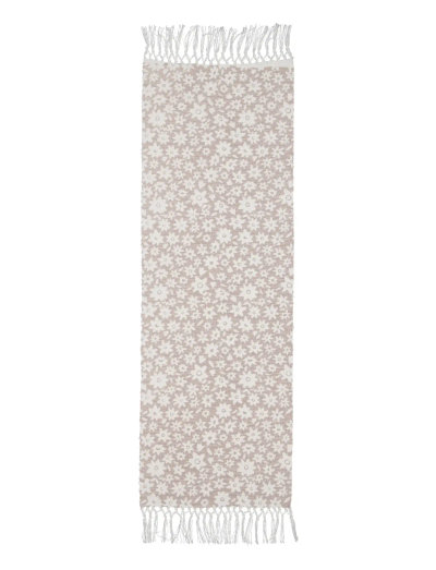 This spring's beautiful runner with a printed flower on the fabric's nice, slightly wrinkled quality. To give the whole runner a little life and elegance, it also has a fringe with a knot on each side.