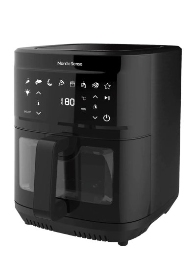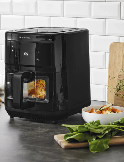 Denne airfryer på 9 liter er til store portioner og sundere madlavning. Temperaturen kan justeres fra 80 til 200 °C og timeren kan sættes op til 60 minutter, så der er styr på alt fra sprøde pommes frites til saftige kyllingestykker. Varmeelementer i top og bund sikrer en jævn tilberedning, mens det smarte vindue gør det nemt at følge med i madlavningen undervejs.
