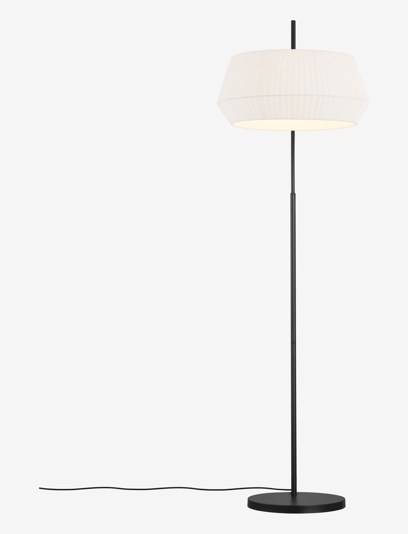 Den runde skærm i Dicte-serien er lavet af blødt, håndbundet stof, der sætter et hyggeligt og hjemligt præg på ethvert rum. Den store plisserede bomuldsskærm sikrer et blødt og diffust lys, der er elegant ophængt fra lampens buede fod – perfekt til at blive bøjet ind over en lænestol eller et sofabord.