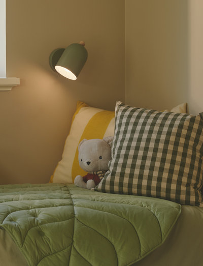Gaston er en strømlinet væglampe, der fås i fire fine, afdæmpede farver. Den afrundede skærm har en lille trædetalje på toppen og tilføjer et fint touch til ethvert legerum eller børneværelse. Lampen har en justerbar skærm for et retningsbestemt lys.