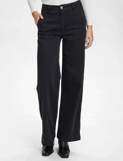 Disse lange bukser har en afslappet silhuet og et bredt ben, der sikrer komfort og bevægelsesfrihed. Deres alsidige stil gør dem velegnede til forskellige lejligheder, og de kan nemt dresses op eller ned.