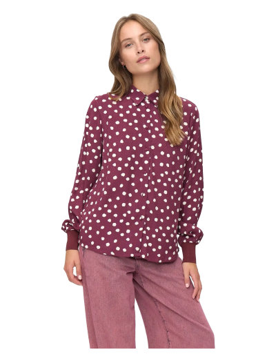 Denne skjorte har en knaplukning foran og lange ærmer, hvilket giver den et klassisk udtryk. Det gennemgående mønster tilføjer et visuelt interessant element, hvilket gør den alsidig til forskellige lejligheder.