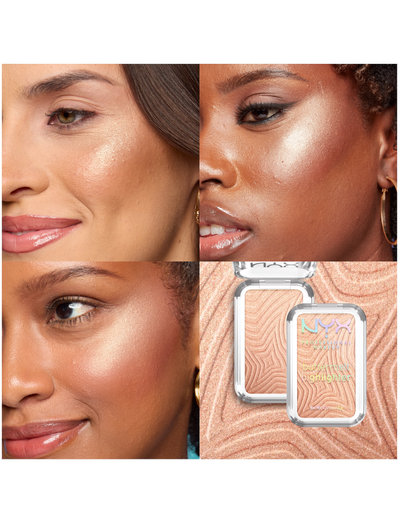 Smørblød highlighter som smelter ind i huden og giver masser af glød. Holder i op til 12 timer. NYX Professional Makeup Buttermelt Highlighter er en highlighter med en smørblød formel som smelter ind i huden for masser af glimtende glød. Få en flot glød hele dagen med denne holdbare highlighter. Formlen er beriget med mango-, shea- og mandelsmør for en cremet og behagelig følelse. Brug sammen med en lille børste for sømløs og smørblød påføring. Masser af glød!