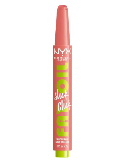 En blød og lækker læbebalsam med diskret farve for 12 timers fugt og pleje. Bløde læber med blot 1 klik. NYX Professional Makeup Fat Oil Slick Click er en pigmenteret læbebalsam som med kun ét klik giver præcis den rette mængde til dine læber. Få et boost af pleje med denne veganske formel* som er beriget med avocado-, multebær- og hindbærolie.