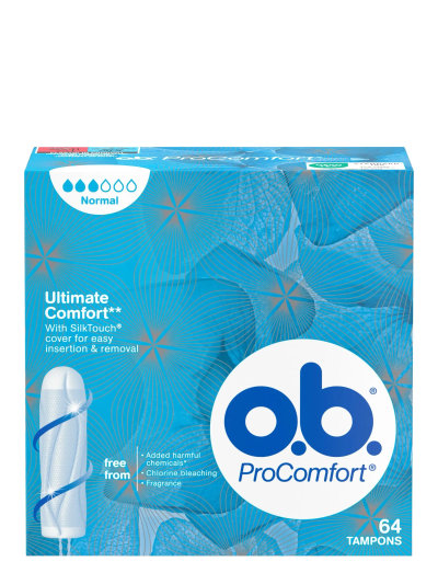 o.b. ProComfort Normal er let at indføre og giver pålidelig beskyttelse ved hjælp af det glatte SilkTouch omslag og de unikke sammenkoblede kanaler. Dette gør den behagelig og nem at bruge, selv på dage hvor menstruationen er let. Op til 100 % beskyttelse mod lækage og pålidelig beskyttelse i 4-8 timer. o.b. ProComfort er vores mest behagelige tampon, i o.b.-serien, for pålidelig beskyttelse, så du kan fokusere på at gøre, hvad du vil. Bedst til dage med moderat til kraftig blødning.