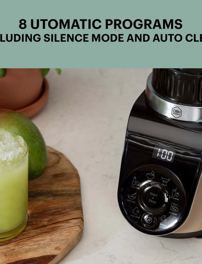 Blend Up har otte automatiske programmer, der dækker alle dine behov – lige fra tilberedning af smoothies, saucer, dips, plantebaserede drikke og kolde supper til isknusning. Derudover har den et støjsvagt program til nem blanding uden forstyrrende støj.