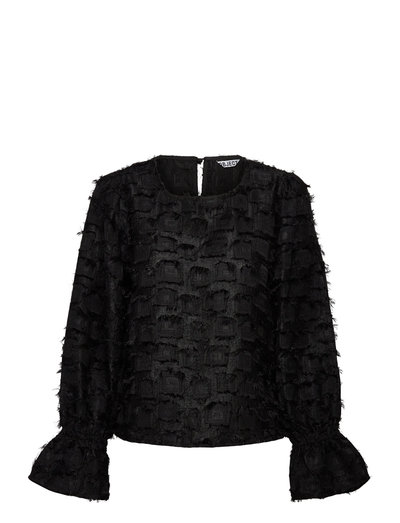Denne top har en rund hals og lange ærmer, hvilket giver en behagelig og stilfuld pasform. Det teksturerede stof tilføjer et unikt visuelt udtryk, hvilket gør den til et bemærkelsesværdigt stykke tøj til enhver lejlighed.