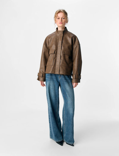 Denne bikerjakke er fremstillet i coated stof for øget holdbarhed og er et pålideligt valg til uforudsigeligt vejr. Brug den løst over skuldrene, eller luk den for at holde kulden ude. Den har en høj stand-up krave, lange ærmer med justerbare spændemanchetter og praktiske forlommer samt knap- og lynlåslukning.