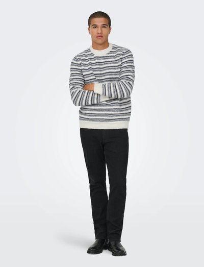 Denne strikkede pullover har en blød fornemmelse og en behagelig, regulær pasform. Det langærmede design og den klassiske rund hals gør den til en alsidig tilføjelse til enhver garderobe, let at style til både afslappede weekender og et afslappet arbejdsmiljø.