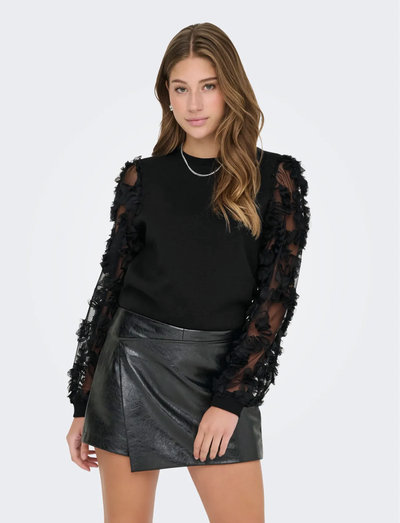 Blød bomuld gør denne sweatshirt til et behageligt valg til hverdagsbrug. Den runde hals og den almindelige pasform giver en klassisk silhuet, mens de lange ærmer og flæsedetaljerne tilføjer et feminint touch. Perfekt til lagdeling eller til at bære alene.