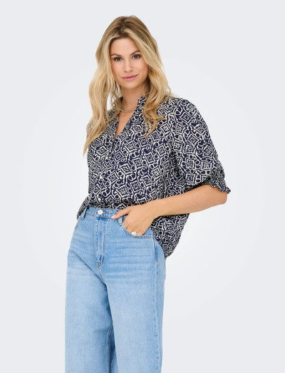 Denne skjorte er fremstillet i et blødt og let viskosemateriale og tilføjer subtile detaljer til ethvert outfit. Designet omfatter 3/4 pufærmer med elastiske manchetter og knaplukning, hvilket gør den til et alsidigt valg til både afslappede og mere formelle lejligheder.