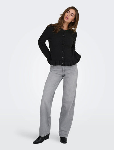Denne strikkede cardigan er et alsidigt lag til ethvert outfit og en garderobeklassiker, der fungerer både i køligt og varmt vejr. Den flade strikkonstruktion giver en fleksibel og behagelig fornemmelse, mens knaplukningen og flæsedetaljerne tilføjer et feminint touch. Designet med en klassisk rund hals og en løs pasform.