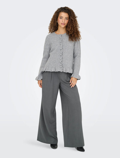 Denne strikkede cardigan er et alsidigt lag til ethvert outfit og en garderobeklassiker, der fungerer både i køligt og varmt vejr. Den flade strikkonstruktion giver en fleksibel og behagelig fornemmelse, mens knaplukningen og flæsedetaljerne tilføjer et feminint touch. Designet med en klassisk rund hals og en løs pasform.