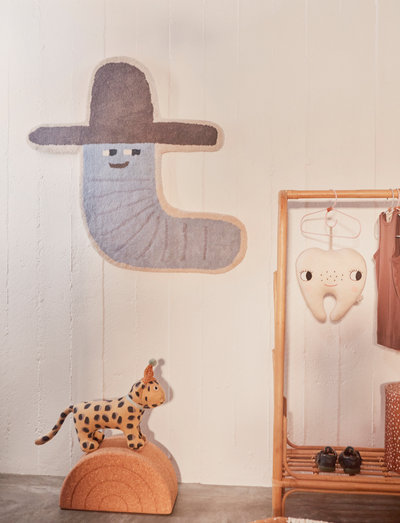 Hold fødderne i armene på Cae Coboy Tuftet Rug. Tæppet har et flot og behageligt udtryk og er perfekt til børneværelset. Brug det også til udsmykning på værelset. Tæppet er lavet i en tuftet kvalitet i olie og bomuld.