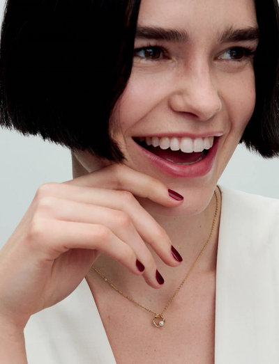 Denne halskæde har et organisk formet, 14k guldbelagt vedhæng og fremviser en behandlet kulturferskvandsperle sammen med en række pavé-satte sten. Vedhænget glider frit på den justerbare kæde. Bemærk, at ferskvandsperler er unikke og kan variere i størrelse og farve. Normal slitage kan forekomme.