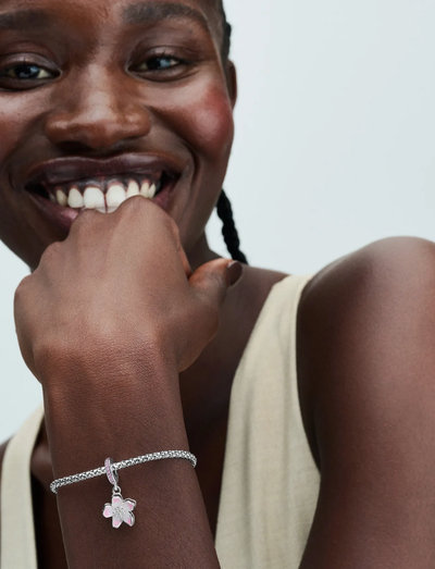 Send en hyldest til de første forårstegn med vores kirkebærcharm med vedhæng i sterlingsølv. Bladene på vores kirsebærblomst er dekoreret i hånden med lyserød og hvid emalje og fremhævet med funklende pink kubisk zirkonia. Blomsten drejer let, som om en brise kærtegner den. Det pavébelagte øsken sætter prikken over i'et på dette uundværlige blomstercharm. Sæt det sammen med andre smykker i kølige toner for at skabe et varmt forårslook.