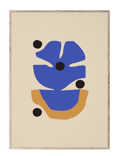 A single flower in warm yellow and vibrant indigo blue forms the centerpiece of Flor Azul by Mexican artist Berenice Hernandez. Recalling the streets of her youth, the motif is a graphic representation of the plant filled urban landscapes she grew up around in southern and central Mexico. Set against a warm backdrop in beige, the flower floats in and around four black dots that ground the composition. A simple, yet bold expression of colour and life. Berenice Hernandez for Paper Collective. A graphic art print / poster manufactured in Denmark from environmentally certified materials and production.