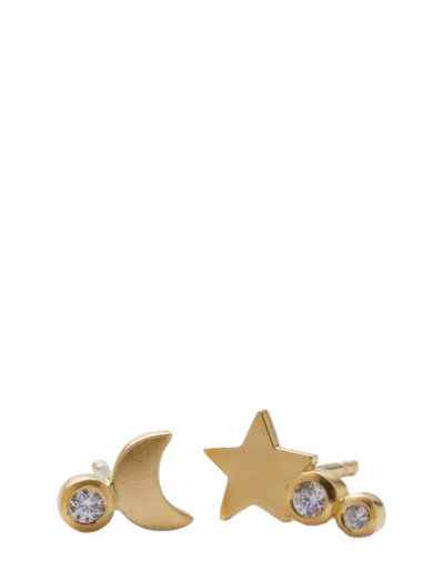 Disse ørestikkere fremkalder skønheden i en stjernebesat nat og tilføjer et strejf af himmelsk charme. Sættet består af en måne og en stjerne, der hver især har en børstet overflade. Månen er prydet med en enkelt kubisk zirkonia, mens stjernen funkler med to. Brug dem som et matchende par, eller sæt dem sammen i samme øre for et unikt look. De er fremstillet af certificeret genanvendt sterlingsølv og er ideelle til at tilføje subtile gnistre til ethvert outfit.
