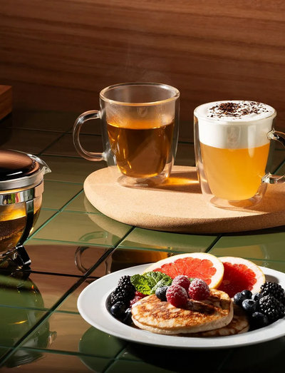 De kommer fra BISTRO, vores populære serie af dobbeltvæggede glas, og hver kop er individuelt mundblæst af dygtige håndværkere i varmebestandigt borosilikatglas.