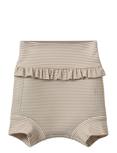 Disse badebukser har en legesyg flæsedetalje og er perfekte til at plaske rundt i. Det stribede design tilføjer et strejf af sjov til ethvert strand- eller pool-outfit.