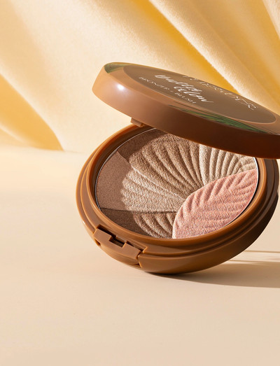 Kan bruges alene eller over makeup. Brug applikatoren til at blande alle nuancer sammen på huden. Påfør bronzer over ansigt og hals for en naturlig solbrun tone, og fejr rouge over kinderne for farve. For at fremhæve og konturere, påfør mere over kindbenene.