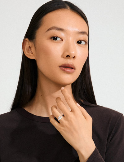 Delikate, sammenflettede cirkler definerer denne sølvbelagte ring. Designet er udsmykket med funklende sten, der tilføjer et strejf af subtil glamour til ethvert look. En alsidig ring til hverdagsbrug eller særlige lejligheder.