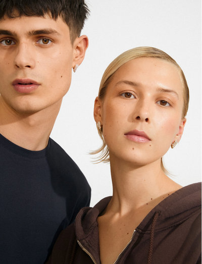 Disse øreringe har en subtil hjerteform set fra siden, hvilket tilføjer et strejf af romantik til ethvert look. De funklende Preciosa-krystaller fanger lyset, hvilket gør dem ideelle til både hverdagsbrug og særlige lejligheder. De er fremstillet af 97 % genanvendte materialer og har brugervenlige snaplåse, der sikrer en behagelig pasform og nem styling.