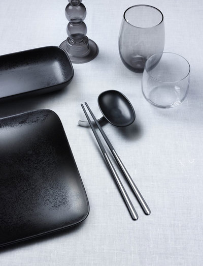 Sushisæt bestående af to sæt spisepinde, en skål og en holder. Holderen kan også bruges som servietring.