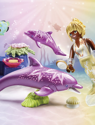 Tag med havfruen ned i de endeløse dybder i den glitrende PLAYMOBIL-undervandsverden. At tage sig af livet i havet er en af de vigtigste opgaver i undervandssamfundet. Havfruen tager sig kærligt af delfinmoren og hendes afkom. Med fantasifuldt designede figurer, dyr og fantastisk tilbehør inviterer PLAYMOBIL Princess Magic Underwater World børn ind i et magisk legeunivers. PLAYMOBIL-sættet indeholder en havfrue, en delfin med en baby, en klippe med koraller og mange andre spændende ting til spændende rollelege. En ideel gave eller souvenir til børn fra 4 år og opefter.