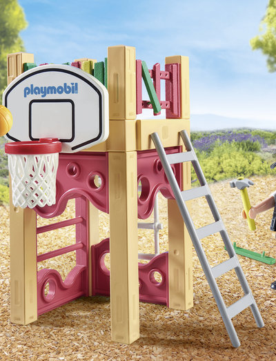 På legepladsen er der ved at blive bygget et nyt tårn. Tømreren arbejder flittigt og samler dygtigt alle elementerne. Den lille dreng venter spændt på endelig at kunne indvie legetårnet. PLAYMOBIL Starter Packs inviterer børn til at dykke direkte ned i PLAYMOBILs mangfoldige verden. Sættene indeholder legefigurer og matchende tilbehør fra populære PLAYMOBIL-verdener, er hurtigt samlet og straks klar til leg. Godt for miljøet: Legesættet består af mere end 80 % bæredygtige materialer.