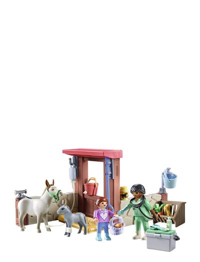 Aid the veterinarian in caring for the donkeys with the PLAYMOBIL Starter Pack Farmyard Veterinarian. The doctor gently examines the donkey foal under the watchful eyes of the mother. Fortunately, the sick animal can be helped quickly. Next in line is the little hamster. The veterinarian always has a lot to do. The fantastic PLAYMOBIL Starter Packs invite children to dive directly into the diverse world of PLAYMOBIL. The sets include play figures and matching accessories from popular PLAYMOBIL worlds, are quickly assembled, and immediately ready play. Good for the environment: The playset is made up of more than 80% sustainable materials.