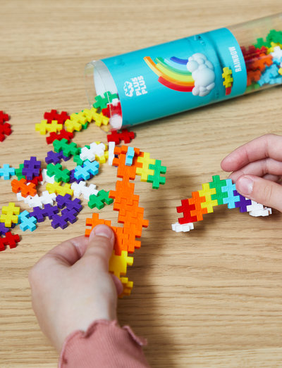 Plus-Plus tubes indeholder 240 stykker i en genanvendelig, rejsevenlig beholder. Denne Rainbow-mix indeholder White, Basic Red, Basic Orange, Basic Yellow, Lime Green, Turquoise og Basic Purple. Brug din fantasi og skab dit eget Plus-Plus-design!