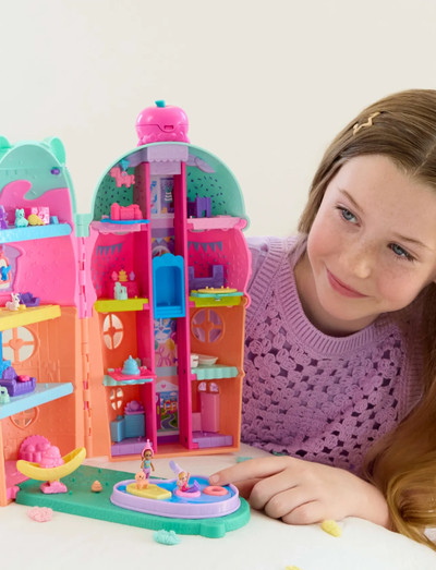 4+ ÅrCome on in and join the celebration! The Polly Pocket Gelato House is shaped like an ice cream cone with an adorable bear theme. The bear's heart-shaped glasses double as a carry handle for on-the-go fun! Ride the elevator to open the cherry on top and… surprise! Reveal confetti from the cherry before discovering 4 floors of fun within the compact! There's a party on every floor and everyone's invited! Kids will love to explore each themed room from a pet nursery to the cutest kitchen. Float outside in the lazy river or ride the rocking horse to make the birdcage swing back and forth! There's so much to do with two micro dolls and 30+ accessories, including pets! Ideal for ages 4 years old and up, especially those who love ice cream and doll houses. Colours and decorations may vary.
