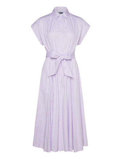 En bindebælt i taljen giver denne stribede kjole en flatterende silhuet. Knaplukningen foran og de korte ærmer bidrager til det klassiske udseende, hvilket gør den til et alsidigt valg til mange lejligheder.