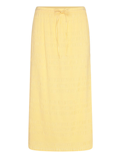 Denne nederdel er fremstillet i et strækbart seersucker-stof og giver både komfort og et subtilt tekstureret look. Maxi-længden og det lette materiale gør den ideel til varmere vejr, mens taljen med snøre sikrer en fleksibel pasform.