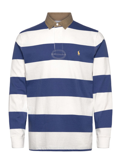 Denne langærmede rugbytrøje har et klassisk fit og tilbyder både komfort og stil. Designet inkluderer en karakteristisk khakifarvet krave og en knaplukning, der forbedrer dens traditionelle appel. Afsluttet med vandrette striber og brandets logo, er det en alsidig tilføjelse til enhver garderobe.