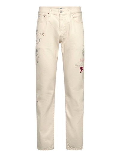 Disse jeans med lige ben har unikke grafikker, der tilføjer et kunstnerisk præg til en klassisk silhuet. Designet giver en behagelig pasform og et karakteristisk look, perfekt til hverdagsbrug.