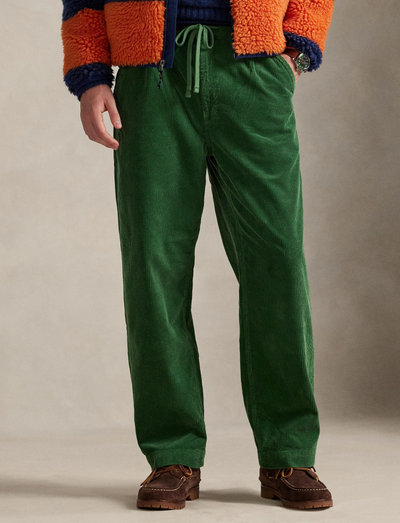 Disse plisserede bukser er fremstillet i bredriflet fløjl, der giver en markant tekstur. De er designet med en afslappet pasform og har en elastisk talje med snøre for justerbar komfort. Den stykfarvede kvalitet giver en diskret, tonal variation. Afsluttes med bæltestropper, vinklede forlommer og paspolerede baglommer.