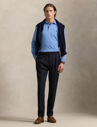 An American style standard since 1972, the Polo shirt has been imitated but never matched. Over the decades, Ralph Lauren has reimagined his signature style in a wide array of colors and fits, yet all retain the quality and attention to detail of the iconic original. This long-sleeve version is cut slim through the body and washed for added softness.Custom Slim Fit: a trim silhouette in between our Classic Fit and Slim Fit. Tailored through the waist.Size medium has a 27.5" front body length, a 28.5" back body length, a 17.75" shoulder, a 41.5" chest, and a 34.5" sleeve length. Sleeve length changes 1" between sizes.