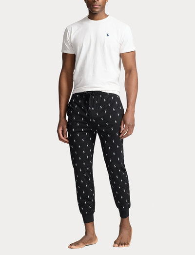 Slap af med stil i disse bløde bomuldsjersey-joggingbukser. Med et allover ponyprint giver de både komfort og et strejf af klassisk stil. Den elastiske linning med snøre sikrer en perfekt pasform, mens de ribbede kanter tilføjer en sporty finish.