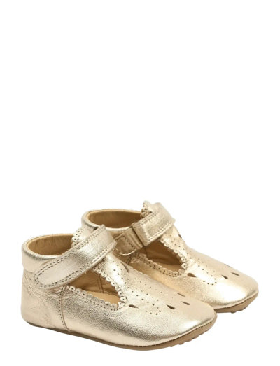 Pom Pom® Beginners™ Velcro slippers in leather both inside and outside, with beautiful patteren. Full non-slip rubber sole. Closes with velcro over the instep. Fit normal to narrow. 100% free of chrome, heavy metals, chemicals, and meets the EU's REACH standard. Produced in Europe.