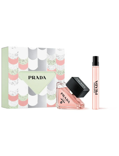 Dette tosæts indeholder Prada Paradoxe Eau de Parfum i fuld størrelse (30 ml) og en rejsespray (10 ml).