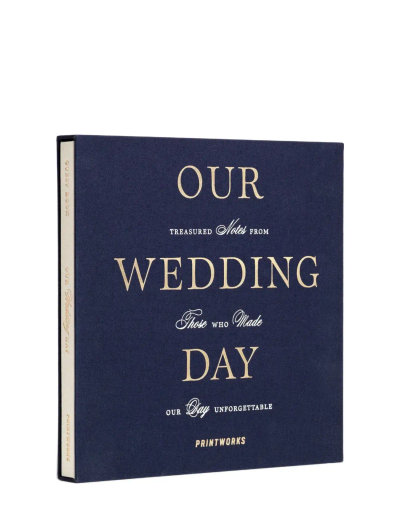 Our Wedding Day is a beautifully designed guest book made to capture the heartfelt words and warm wishes from your special day. With its ivory white cover and elegant navy slipcase, it’s a timeless keepsake meant to be treasured for years to come. With 100 pages, it provides ample space for your guests to share their messages. Let it live on your shelf or coffee table as a gentle reminder of the love and joy shared on your wedding day.