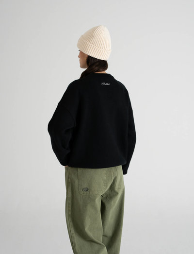 Denne striktrøje har en oversized pasform og er fremstillet af ren bomuld for komfort hele dagen. Den er afsluttet med et kontrasterende jacquardlogo og broderi på halsen.